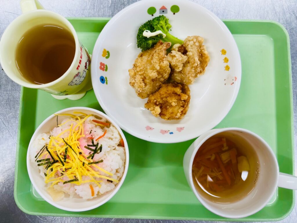 給食 🎎🍡ひな祭り🎎🍡 2025.03.03 今日はひな祭りでしたので ひな祭りメニューにしてみました❣️ ⭐️ちらし寿司 ⭐️からあげ ⭐️ブロッコリー ⭐️すまし汁 3時のおやつは3色団子でした🍡🩷🤍💚 すし酢が苦手な子もいたけれど、頑張って食べていました☺️ ひな祭り、みんなの家庭は何をしますか?☺️ バス遠足🚌☀️ 前の記事 3月5日の給食 次の記事