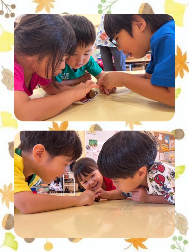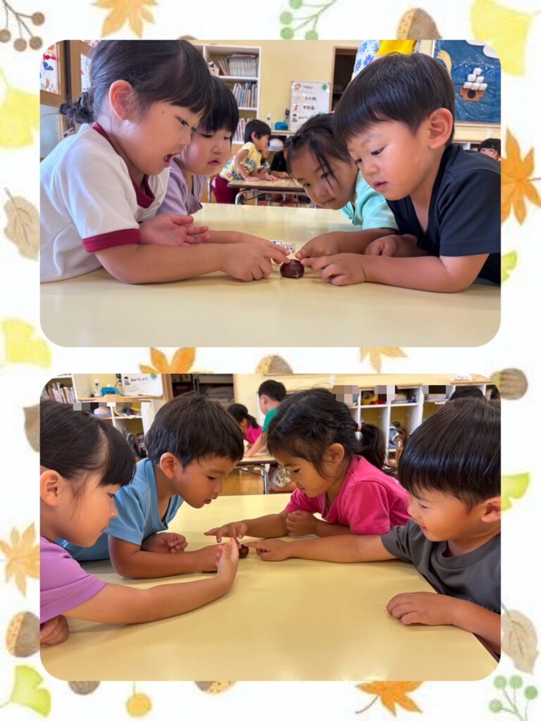 きいろ組 栗🌰 2025.10.08 お友達が栗を持って来て、見せてくれました✨みんなで栗を見たり触ったりしながら、秋の訪れを感じることができました🌰🧡みんなに見せてくれてありがとう😊 ご褒美Day💗 前の記事 ミニゲーム⚜️ 次の記事