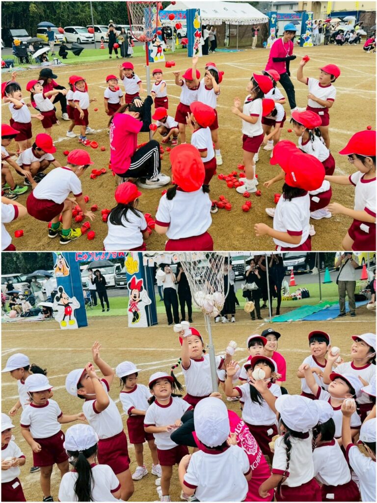 玉入れ競争では、上級生のお兄ちゃんお姉ちゃんと一緒にみんなで力を合わせて勝利に向かって頑張ることが出来ました🔴⚪️💪