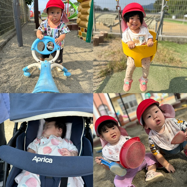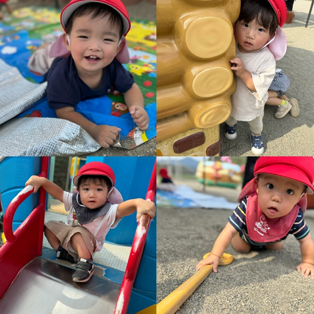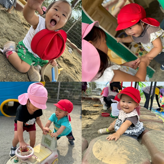 さくらんぼ組 園庭遊び🍊 2025.10.16 運動会も終わり園庭でたくさん遊んでいます😊水分補給もしっかりとできるようになってきて、いい汗をかきながらも楽しく過ごしています😆はいはいが上手なったり、もう少しで歩けそうだったり、遊具に登れるようになったりとそれぞれの行動範囲も広がっています✨月齢の差もあるので、自分よりも小さいお友だちと関わろうとする姿も可愛い❤️今日もいろいろな場所で遊びを楽しんでいました👶🏻👧🏻👦🏻 運動会🏅🎈 前の記事 運動会⚡️🏃 次の記事