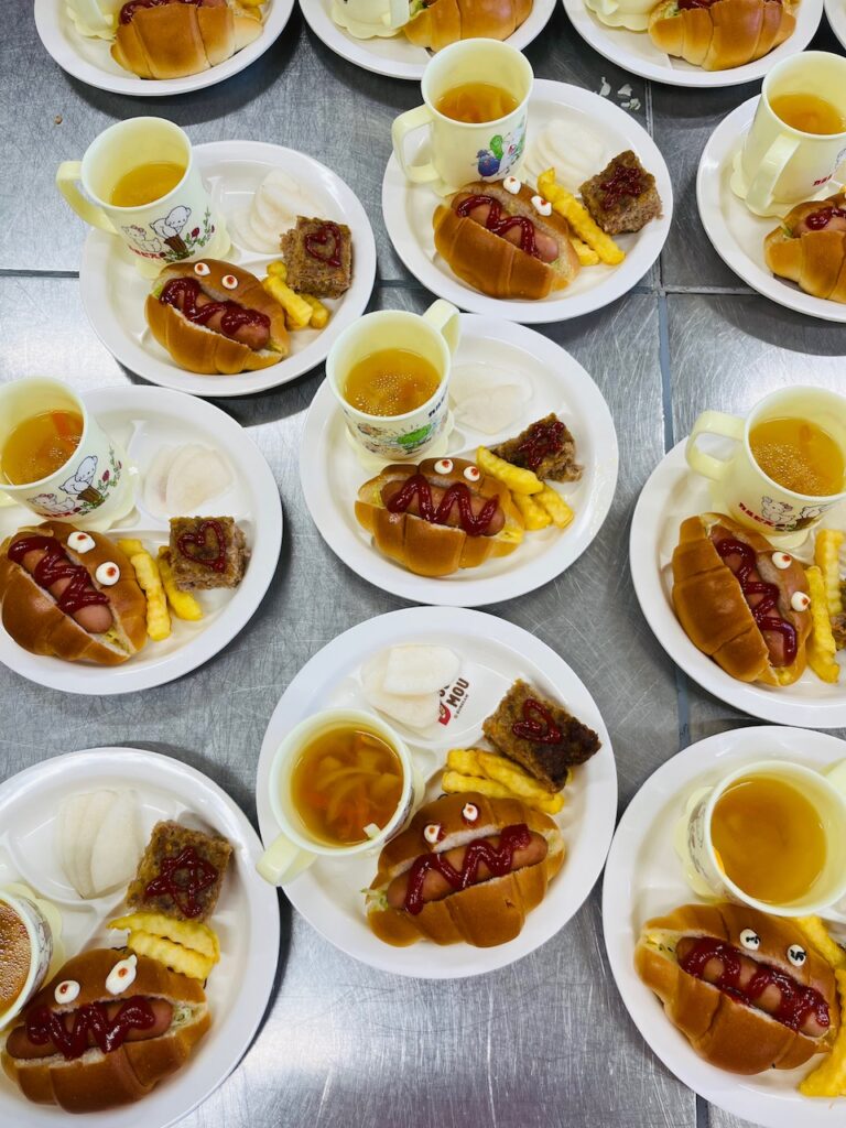 給食 10月17日の給食 2025.10.20 今日は、10月生まれさんのお誕生日会でした😊 なので、今日の給食はお子様ランチ🍴💕 ⭐️ホットドッグ🌭⭐️ポテト🥔⭐️ハンバーグ⭐️コンソメスープ⭐️梨🍐 ホットドッグに顔を書いてみました😆✨ 何に見えるかなー?😆 3時のおやつは梨パフェ🍐 写真撮り忘れててすみません😭🙏 子どもたちは給食もおやつもよく食べてくれました🥰 10月生まれのみんなお誕生日おめでとう🥰✨ いちに🐥いちに🐥 前の記事 うんとこしょ💪🏻 次の記事