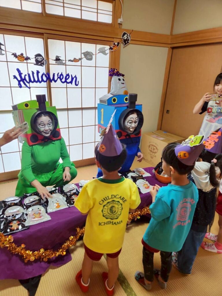 今日はハロウィンでした!今年はトーマスとパーシーが来てくれました😁可愛い帽子を被ってハレレアハウスに出発した子どもたち、歩いて行く時からワクワクが止まらず「楽しみ!!」「少し怖い」と言っている子どもがたくさんいました😀