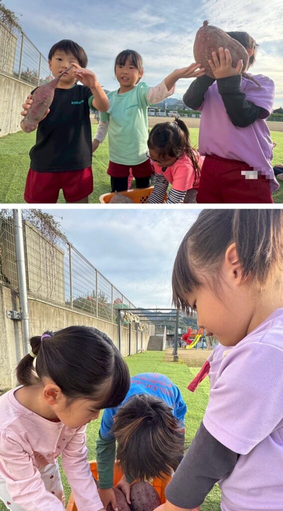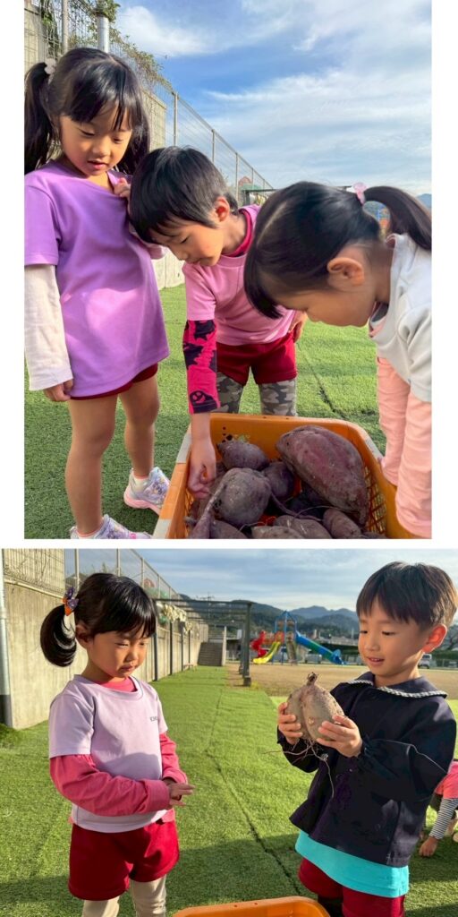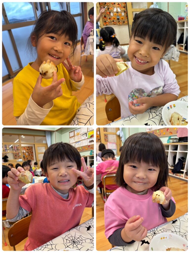 ハロウィン🎃ということもあり、おばけ👻スイートポテトを作りました!!今回のクッキングでは保育参観で収穫したさつまいもを使いました😄使う芋を皆で話し合いしながら見つけました!!