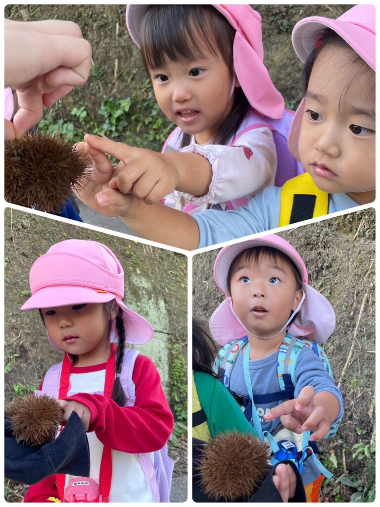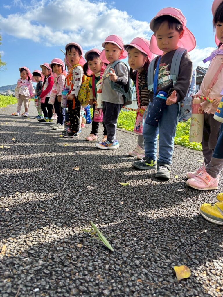 涼しくなってきて少しずつお散歩をして歩く練習をしていたこともあり、少し長い距離でも頑張って歩くことができました✨ 今年はリュックと水筒を持って歩きました!道中、金木犀や栗、ススキに川などたくさんの自然に触れながら楽しい遠足になりました♪