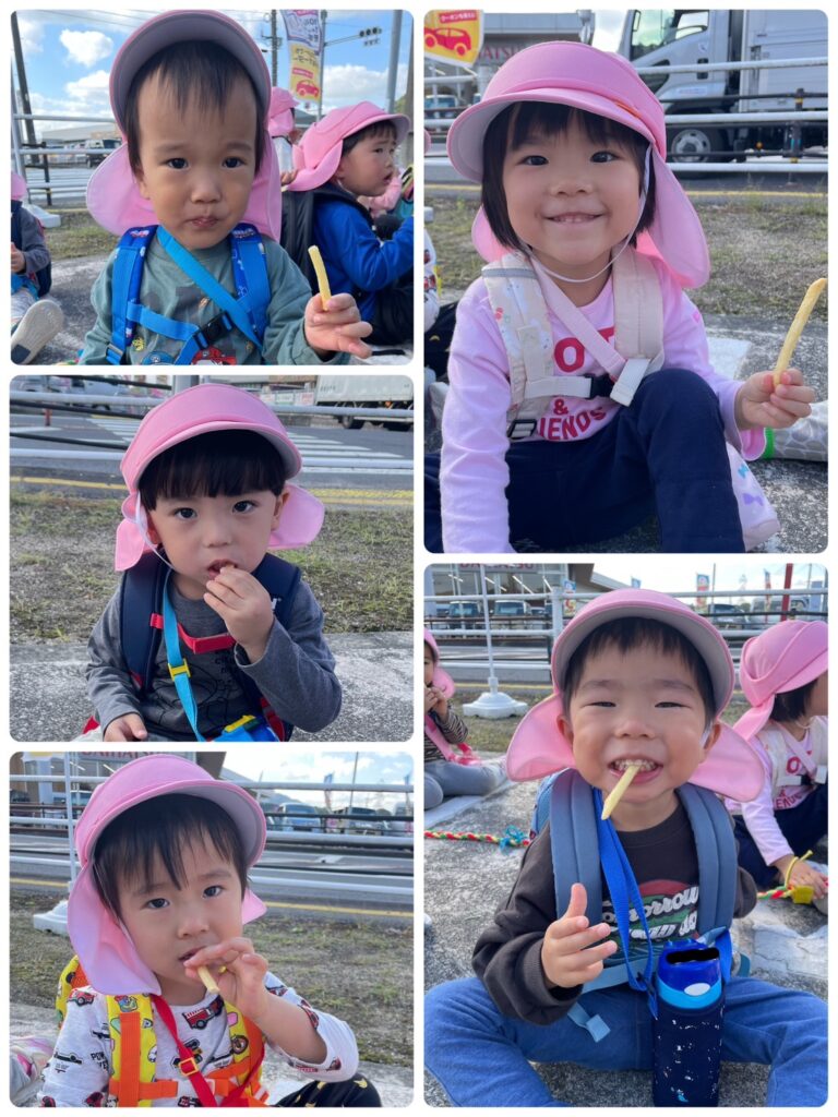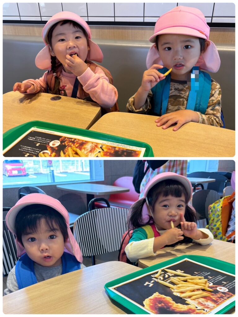今回は、な、な、なんと、こどもたちが大好きなマクドナルドに行き、ポテト休憩をしました🤣🍟マクドナルドに行くことは子どもたちには内緒にしていましたが、Mの看板が見えると、「ハッピーセットのお店!」「ポテト食べたいなぁ〜」など微笑ましい会話がたくさん聞こえてきました🤭 子どもたちに「ポテト食べに行く?」と聞くとジャンプしながら「やったーー!」と大喜びな様子でした笑