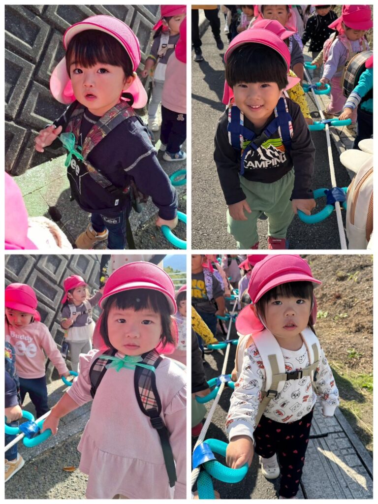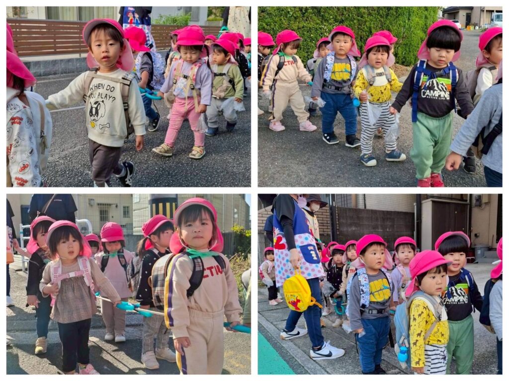 秋の遠足に行きました🍂 リュックを背負い、誘導ロープを持って園周辺のお散歩へ👣