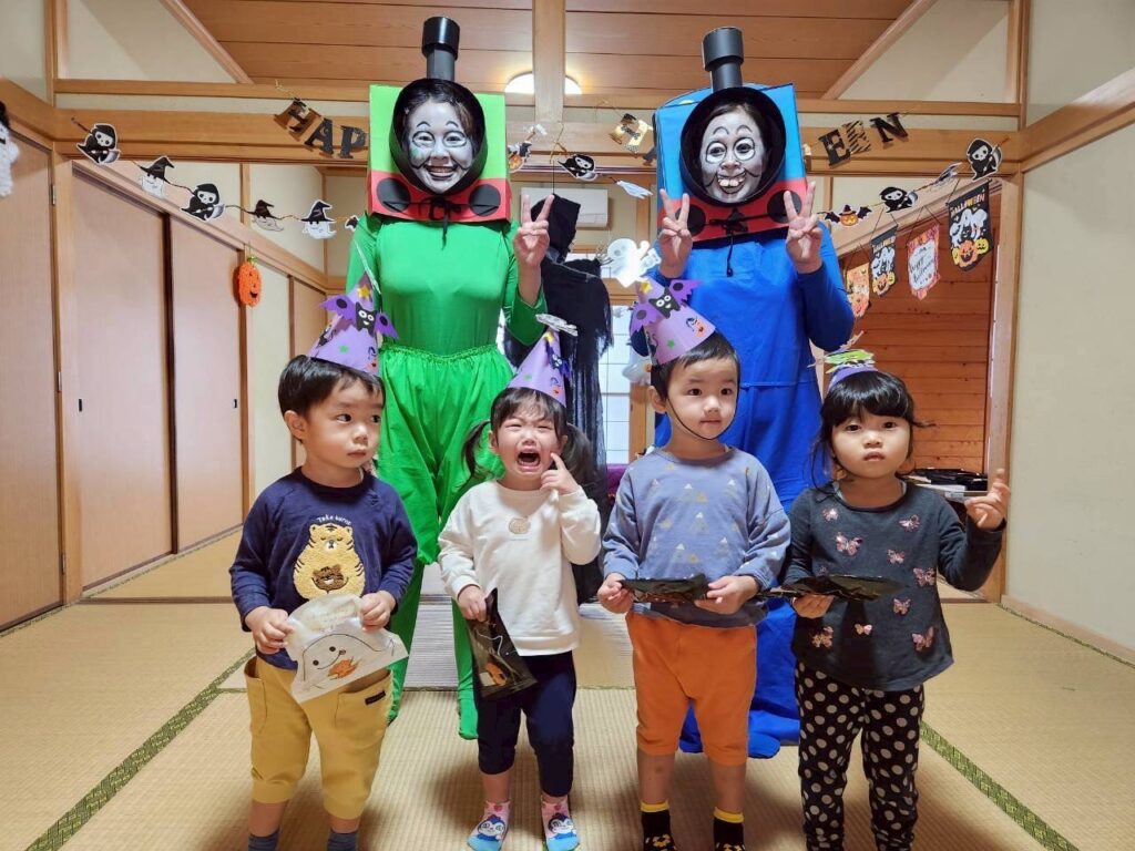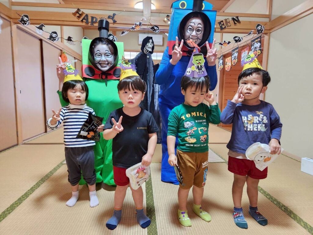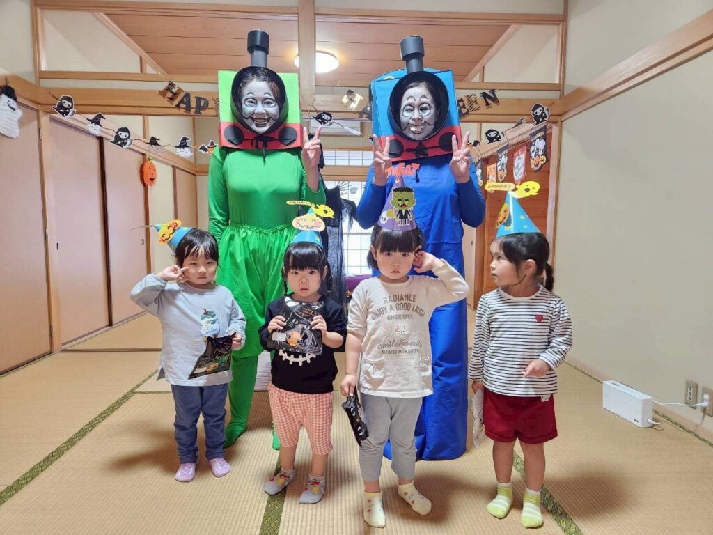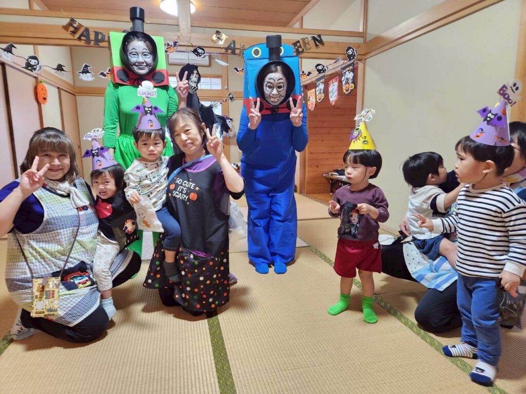 もも組 👻ハロウィン🎃 2025.11.13 10/27に市浜こども園のハロウィンがありました!今回はハレレアに行き、お菓子をもらいました!三角帽子をかぶってウキウキなこどもたち✨ ハレレアに入ると、トーマスとパーシーがみんなにお菓子をくれました。トーマスとパーシーを目の前にすると,びっくりして泣く子も🫣笑 お菓子をもらって嬉しそうな子どもたちでした♪ ハロウィン🎃 前の記事 親子遠足✨🏰💗 次の記事