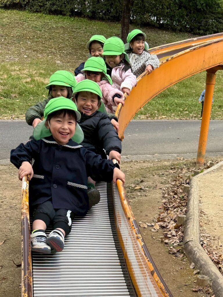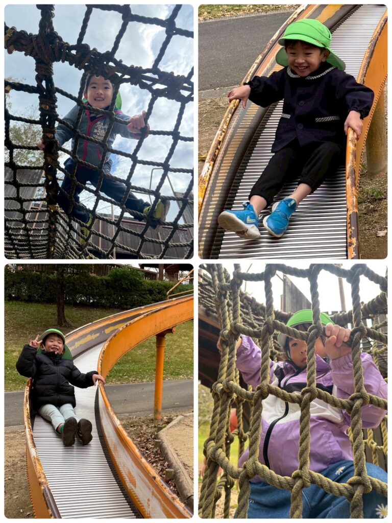 1つ目の公園では大きなガラガラの滑り台が大人気でみんな「キャー」と言いながら何度も何度も滑ってました😆