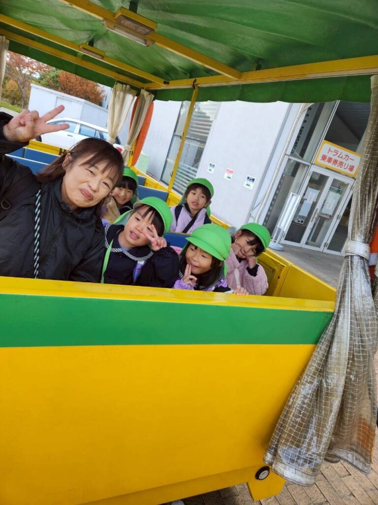 お弁当を食べたらはなちゃん2号のトラムカーに乗って1つ目の公園へ向かいました!