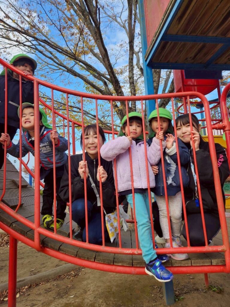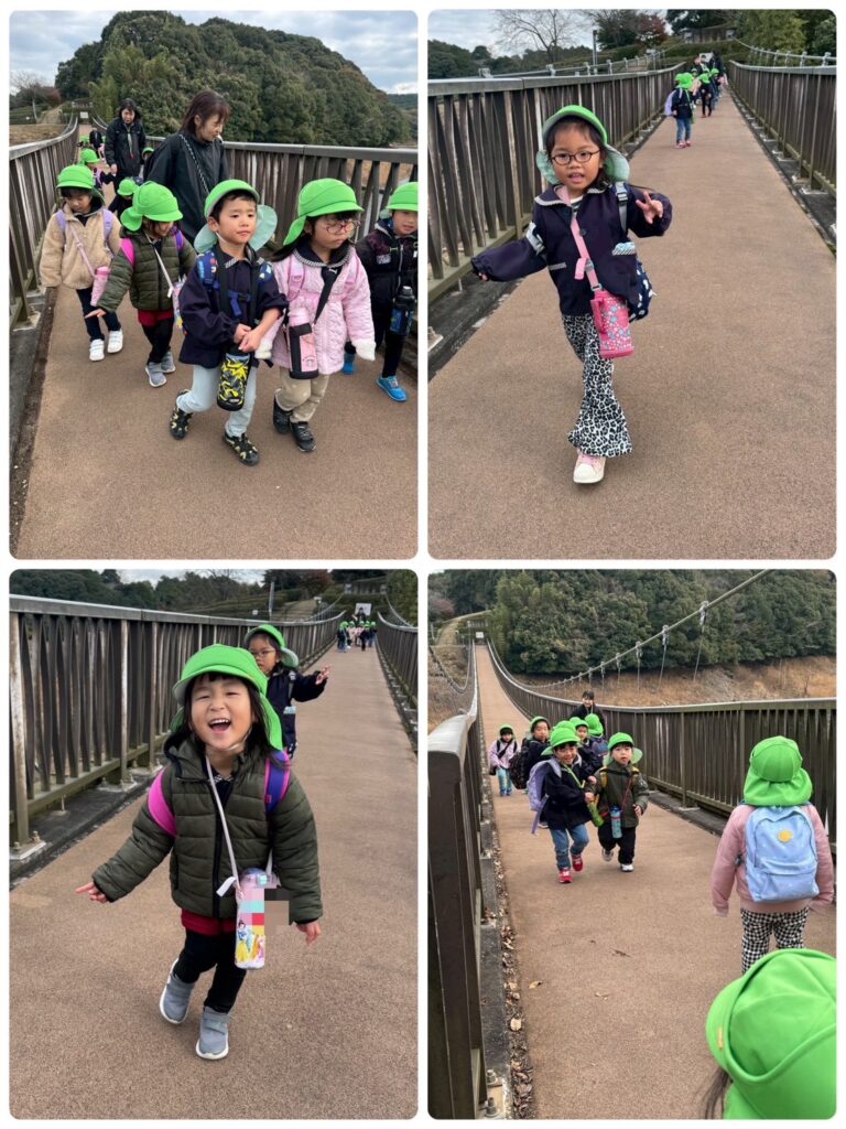 遊んだ後は最後の公園に歩いて向かいました!!最後の公園に向かう途中にある大きな吊り橋を皆忍者のように静かにゆっくりゆっくりと渡りました🥷怖がっているお友達を「大丈夫だよ」と言って迎えに来てくれた子どもたち♡♡子どもたちたちの優しさをすごく感じました!
