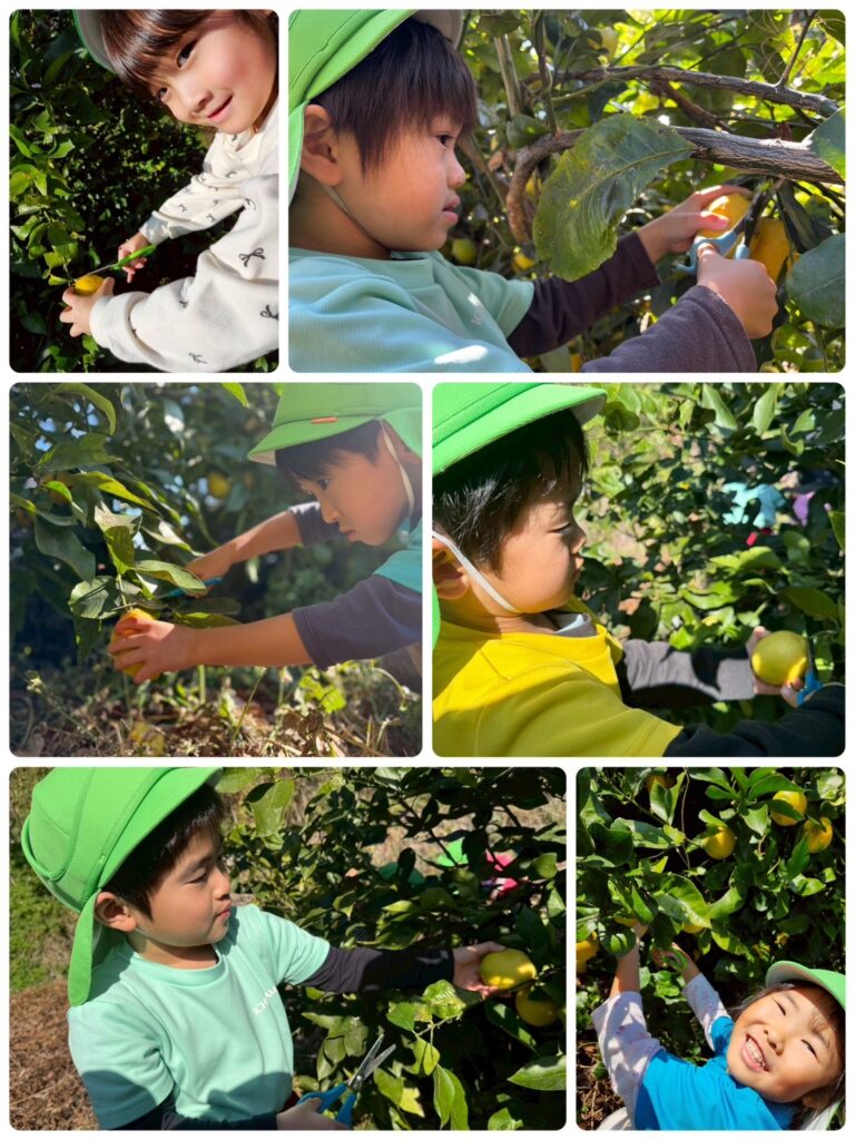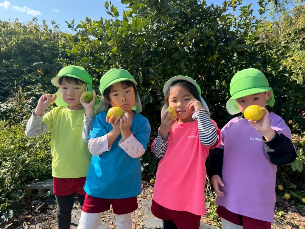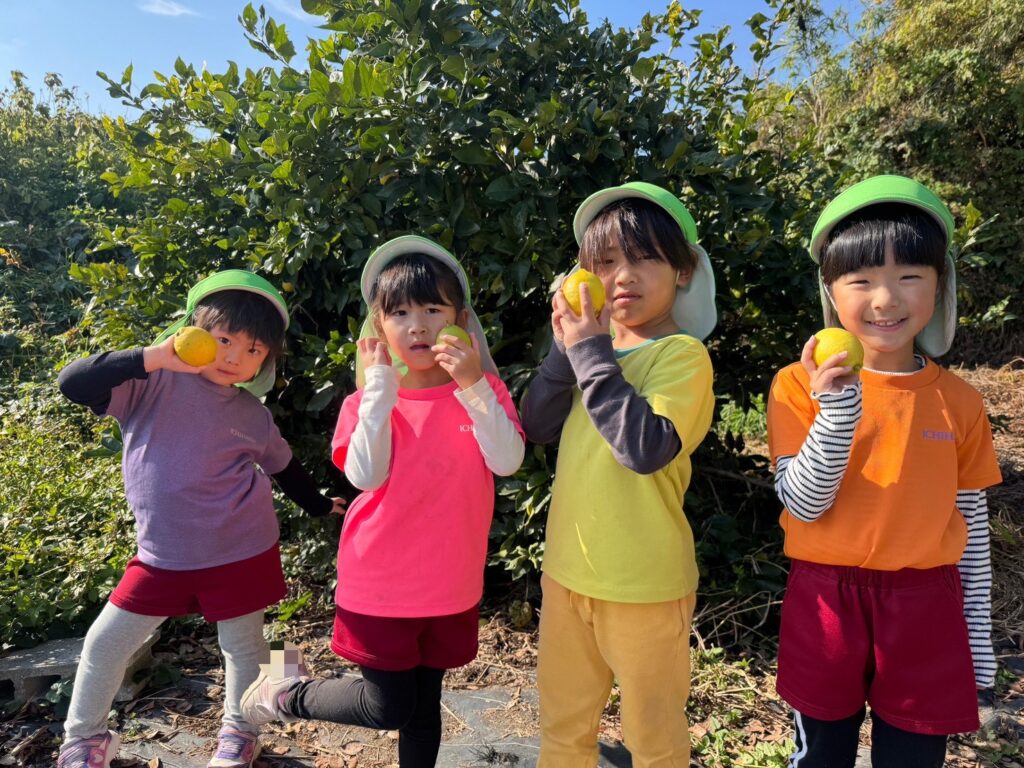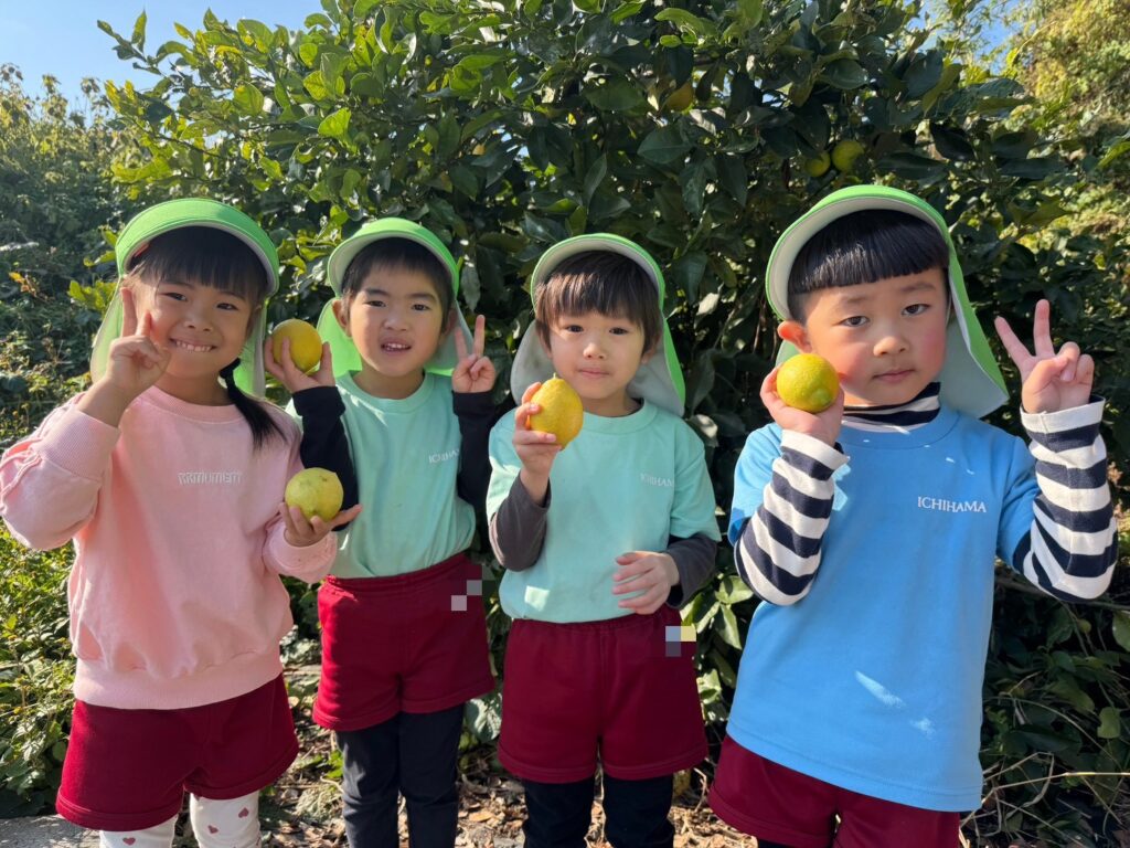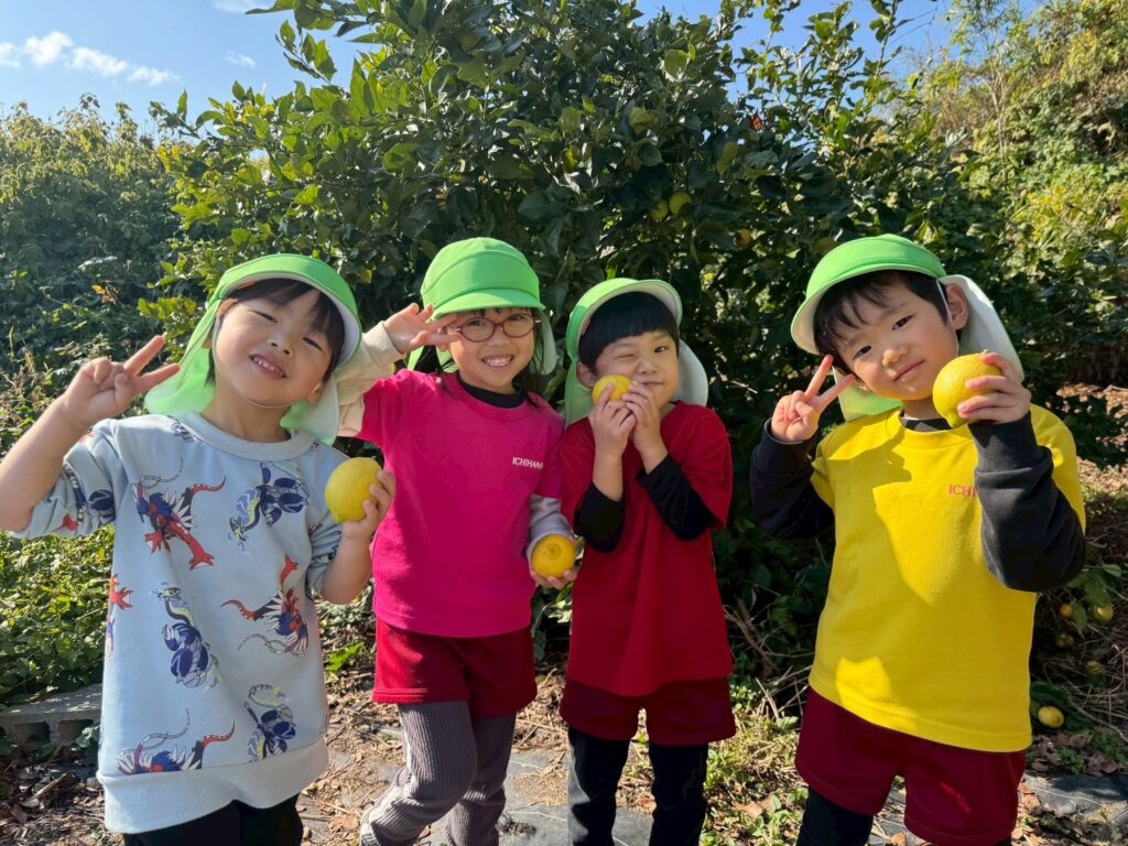みどり組 レモン狩り🍋🍋 2025.12.21 12月19日(金)に畑の奥にあるレモン🍋を収穫しに行きました!!安藤先生に収穫の仕方を教えてもらい、自分が気に入ったレモン🍋を見つけてとりました😁 さっそく給食の先生に調理してもらい、給食のメニューのサラダにかけて食べました😋「すっぱーい!」と言いながらレモンの果肉まで食べるみどりさんでした😁 クッキング🥞💕 前の記事