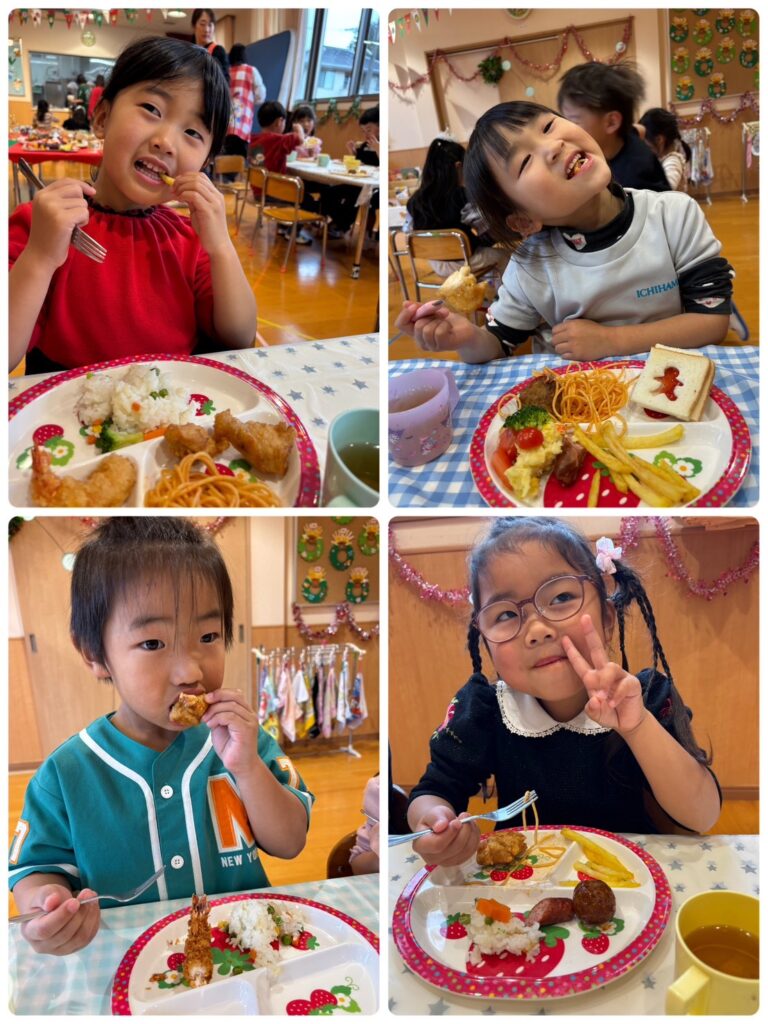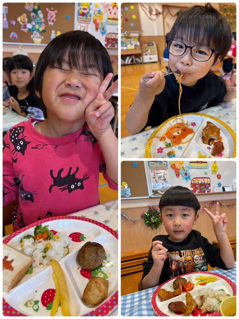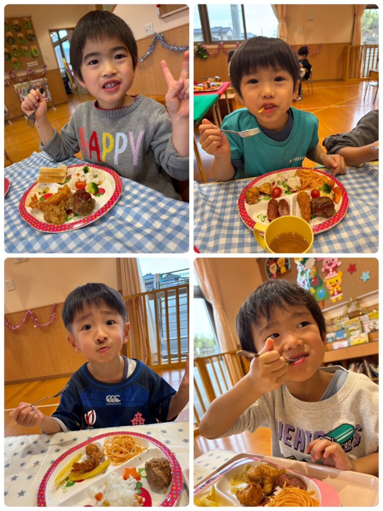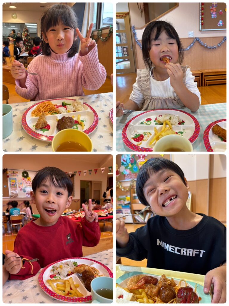 みどり組 クリスマス会🎄 2025.12.26 12月24日(水)にずっと楽しみにしていたクリスマス会がありました🥰パーティーでは「あわてんぼうのサンタクロース」をサンタさんに「頑張って届けてね」「ありがとう」という想いを込めて歌いました☺️ 給食では、みんなの大好きな物がたくさんのったバイキング♥️食べたい物を選んでお皿に入れてもらいたくさん食べました😋沢山おかわりをしてモリモリ食べました😁多い人で4回ほどのおかわりを!? 楽しいクリスマス会になりました😊1日「今日サンタさん来るかな?」とドキドキワクワクしているみどりぐみさんでした!! クリスマス🎅🎄 前の記事 クリスマス会🎄⭐️ 次の記事