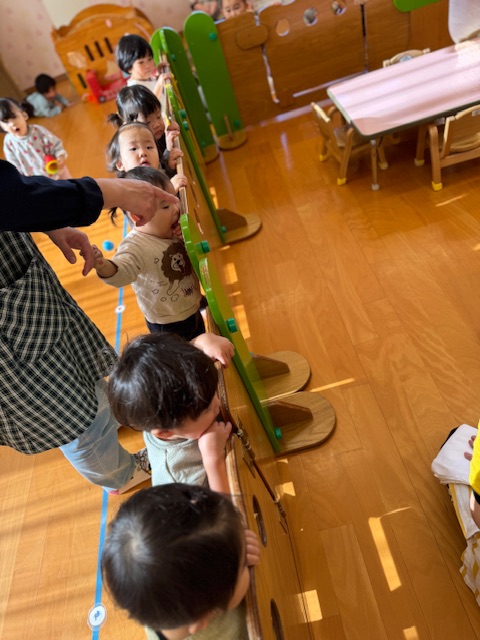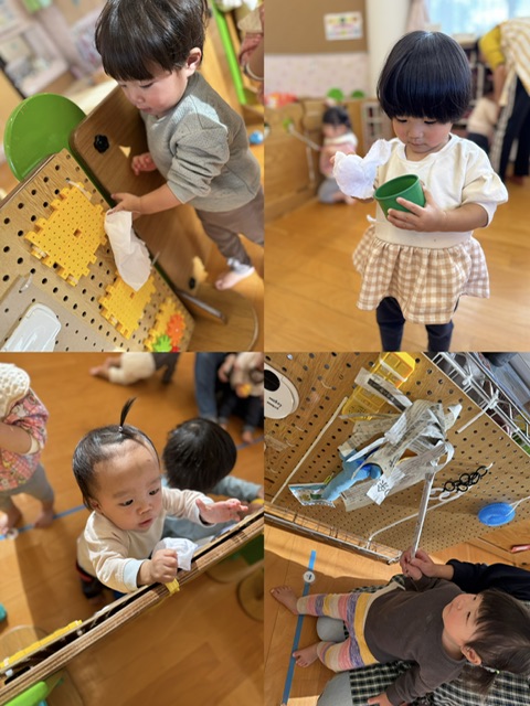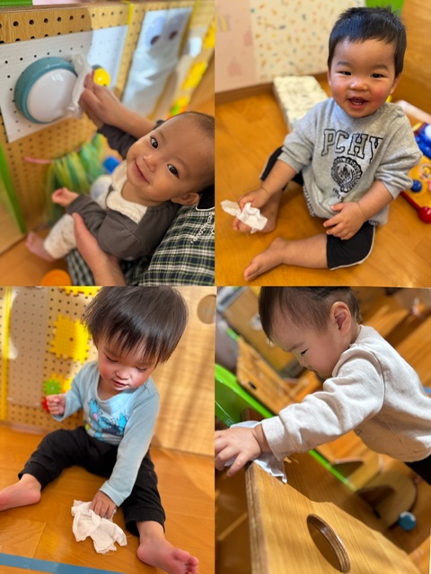こうやってするんだ〜っと言わんばかりに、道具をもらうとすぐに取り掛かる子どもたち😳✨すごい吸収力です!真似っこが上手☺️玩具や柵を一生懸命に拭いて綺麗にしていました😊0歳児なりにどこか理解をして綺麗にしようとする姿に成長も感じることが出来ました🥹