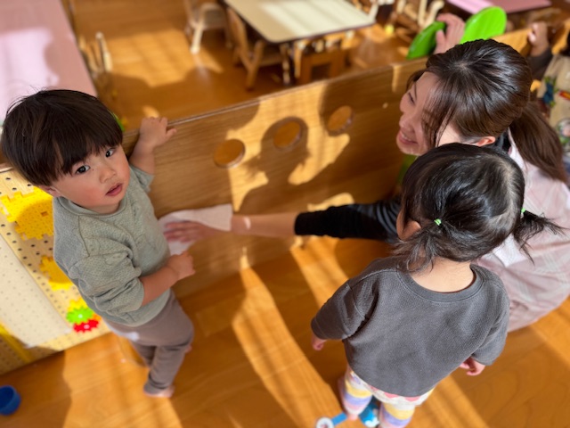 あっという間にクリスマスも終わりましたね🥹そんな今日はさくらんぼ組も大掃除をしました🤭先生が準備を始めると、何か何かと集まって来た子どもたち👀興味津々です✨