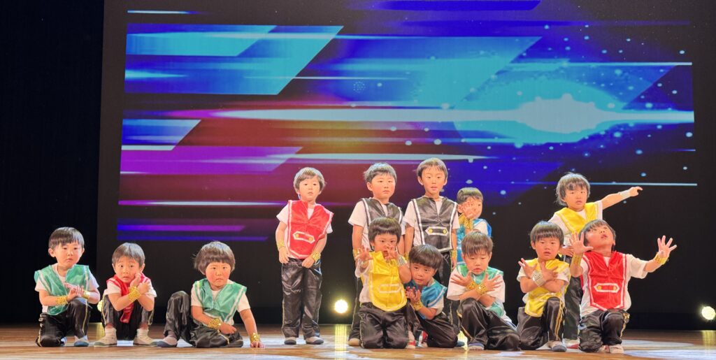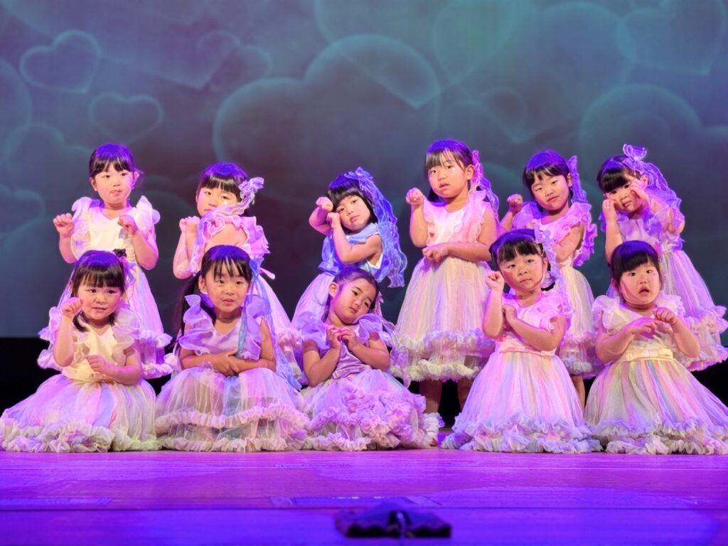ダンスは、子どもたちの好きな曲だったこともあり、練習の時からノリノリでダンスや隊形移動はすぐに覚えました!女の子はほっぺを膨らませたりニコニコしたりと表情までアイドルになりきって踊る事ができていてすっごく可愛かったです❣️先生つい「かわいい〜」って叫んじゃいました😆💕