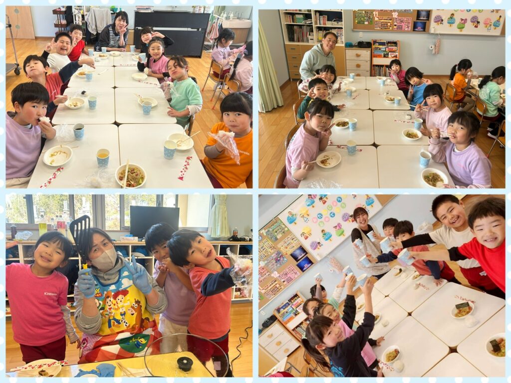 お肉以外の物で自分達が食べたい物を選び、BBQ風パーティー😆✨ 先生達が作ってくれた焼きそばや餃子、ウインナーにポテトなど、たくさんの美味しそうな物をお皿いっぱいに盛り付けていたこども達🤣💗 とっても美味しそうに幸せそうに食べるこども達の姿がほんっっとに可愛らしかったです🥰 念願のマシュマロ焼いて食べることが出来て満足そうなあお組さんでした♡ 頑張ったご褒美からこそいちだんと美味しく感じ楽しいパーティーになったね💗 もちろんおわかりは何回したのかな??というくらいたっっくさん食べたあお組さんでした🤣♡