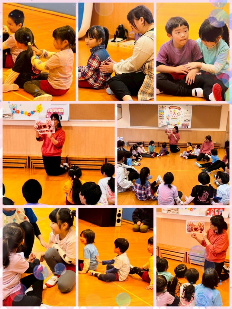 あお組さんにとって最後のテアトリック教室の日。今回の物語は、「チョコレートの国とハートのプリンセス」というお話でした😌 ハートのチョコレートが割れてしまい、どうしよう…と悩んでいるプリンセス。みんなならどうする?どんな温かい言葉を掛けてくれるかな?という先生の質問に、自然と優しい言葉が浮かびあがってくるあお組さん。そんな優しいあお組さんの姿を見て、本当に心が温かく、愛が溢れているこども達だなと改めて感じることが出来ました。「いつもがんばってるね」「だいすきだよ」「かっこいいよ、かわいいよ」そんな温かい言葉を口に出しながらお友達の手や身体に触れ、マッサージする姿も、とってもほっこりしました☺️🍀 制作では、次の日がバレンタインということで、自分の大好きな人にチョコレートを作りました♥️ 誰1人として同じチョコレートを作ってる姿は見られず、一人ひとり自分の思い描くチョコレートを形にすることが出来ていて、本当に表現力豊かなクラスだな、こんなに自分の思いを表現できるって素敵なことだなと感じました🥰 最後にいのちさんのお話があった時、 先生とのお別れやお友達とのお別れを惜しんで涙する姿も🥹 それだけ人を愛し、信じ、大切に思うことが出来るって本当に素晴らしいことだし、これからもずっとその気持ちを忘れずに大切にしていって欲しいなと思います。
