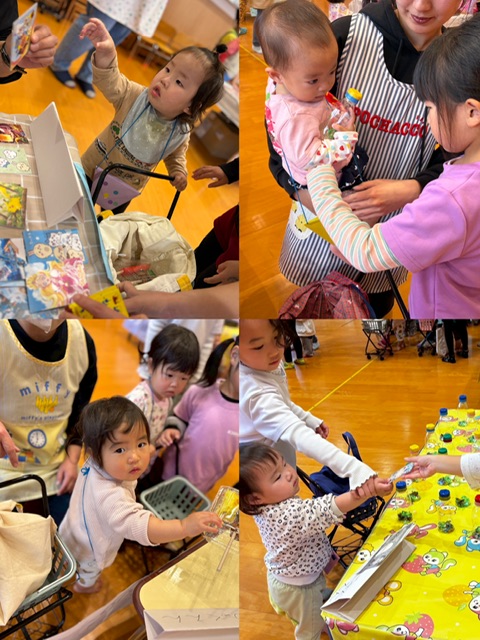 さくらんぼ組 どれにしようかな💭🎶 2026.02.28 2月の行事、お買い物ごっこがありました😊シール貼りをして可愛くしたお財布をぶら下げて♪エコバッグを持って♪ホールで開かれたお店に行ってきました😆年長のあお組さんがエスコートしてくれたり、先生と回ったりしながら、さくらんぼさんなりにお買い物を満喫している様子でした🤭買い物カート🛒を押して回る姿も、様になっていました😆楽しい時間を過ごせたね😊 🍙おにぎりクッキング🍙 前の記事