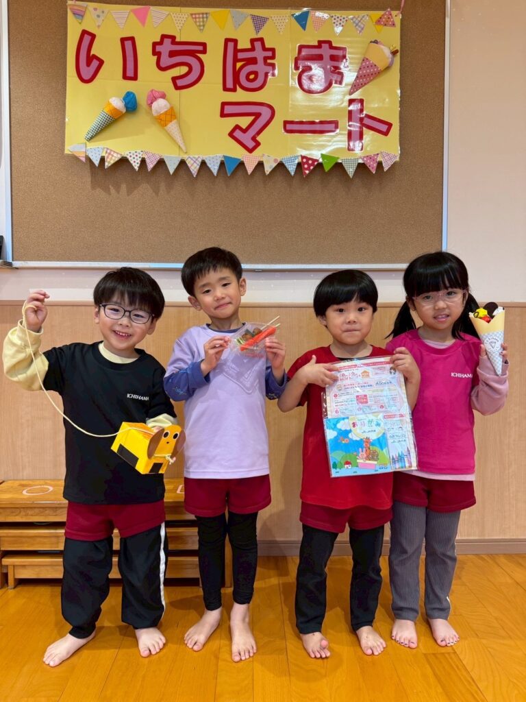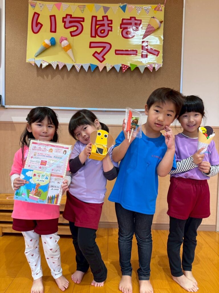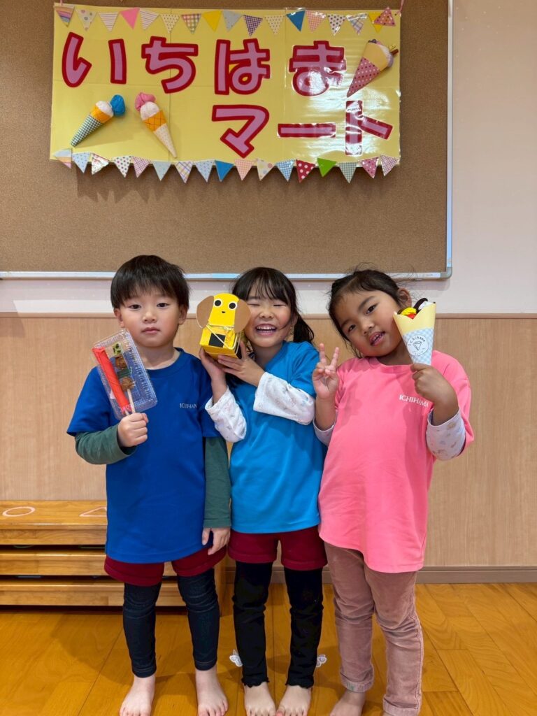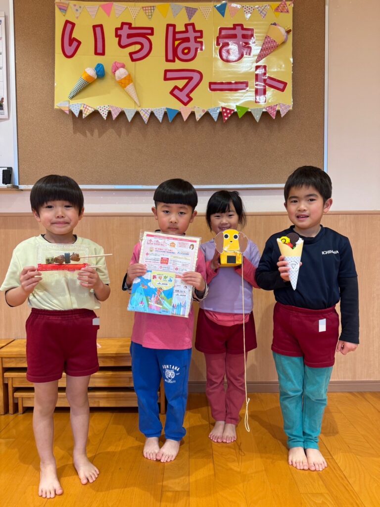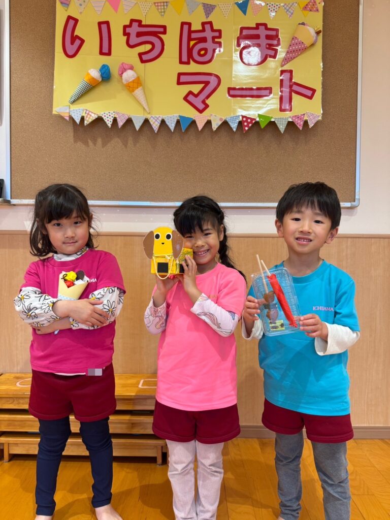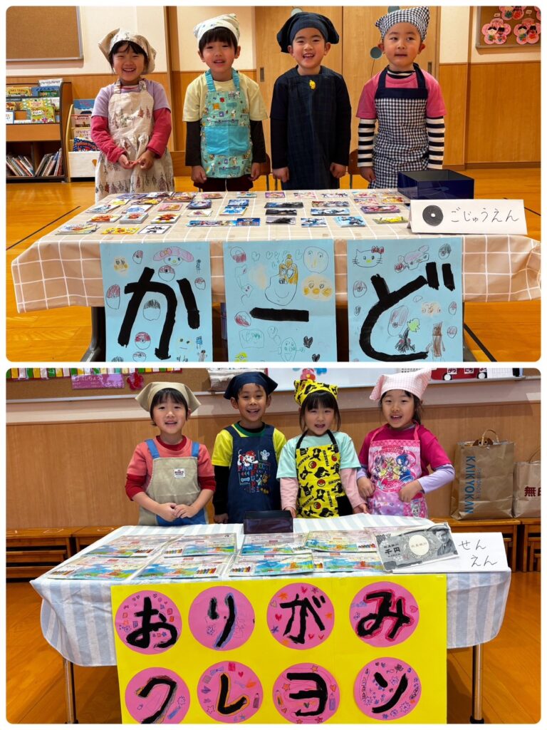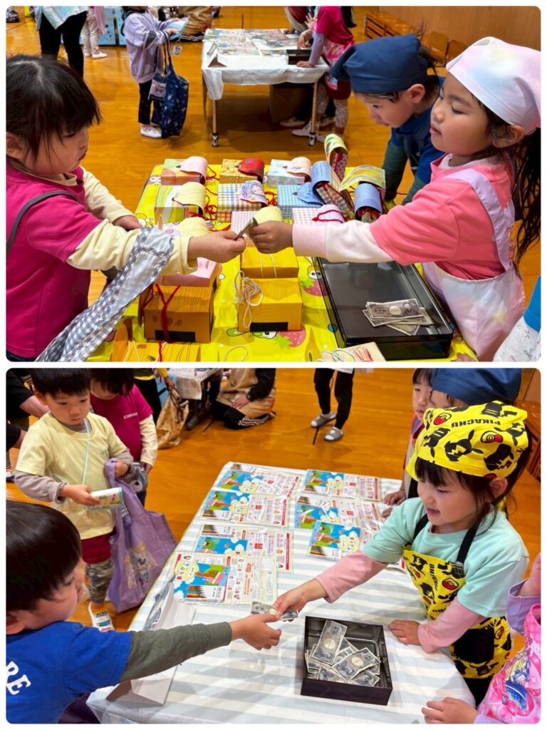 グループのみんなで文字を書いたり、周りに絵を描いたりして作った看板を貼りました😊どのお店からも「いらっしゃいませ〜𓏸𓏸いかがですか〜」と声が枯れそうなくらいの大きな声で言っていたみどりさんたち💦無事商品が完売して良かったです!!「たのしかった」と言っている子どもが多く、また遊びの中でお店屋さんごっこができたらいいなと思います😁
