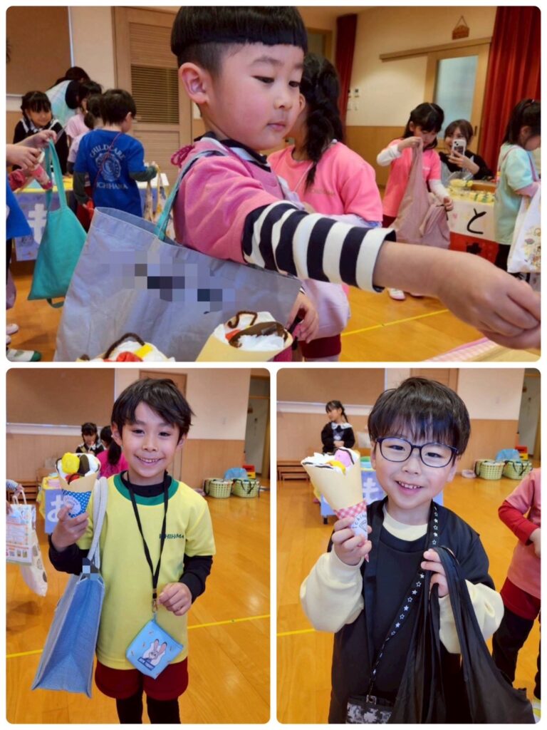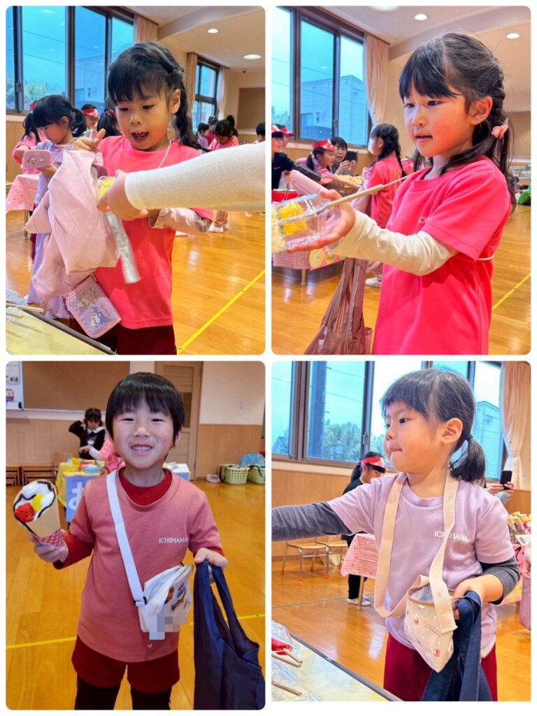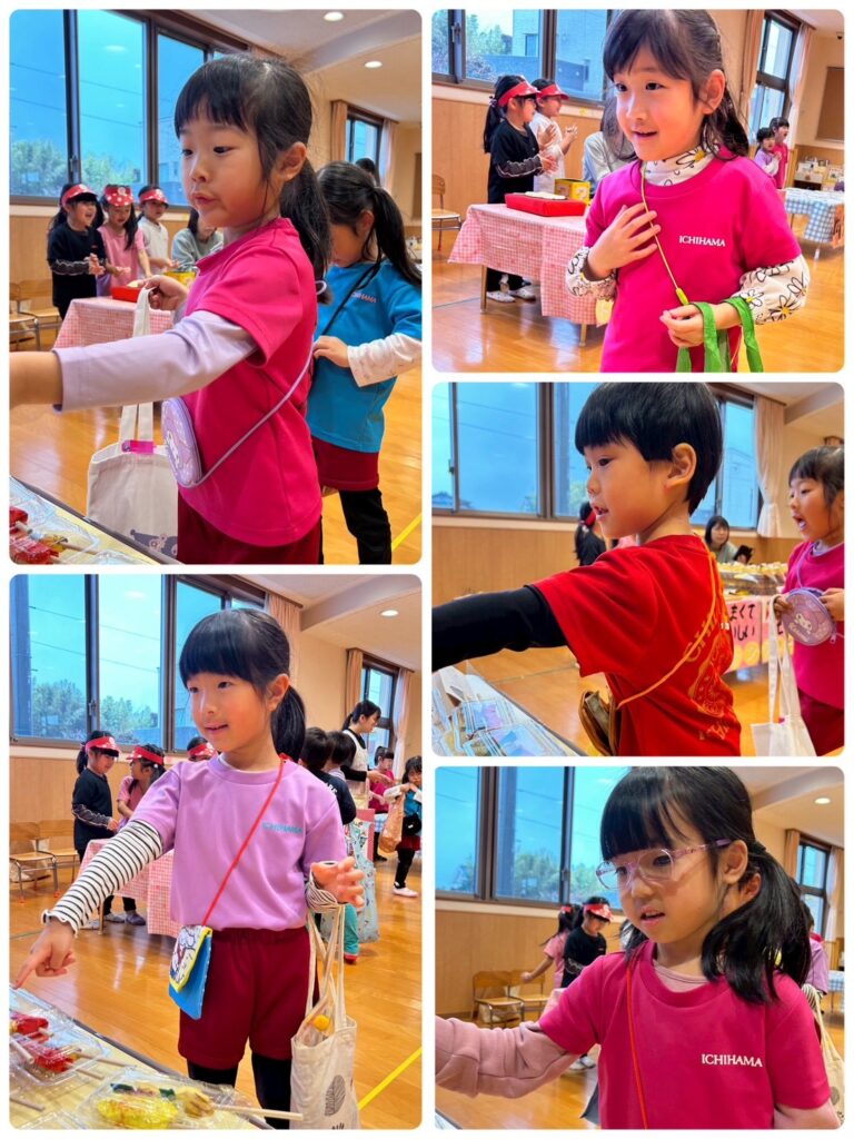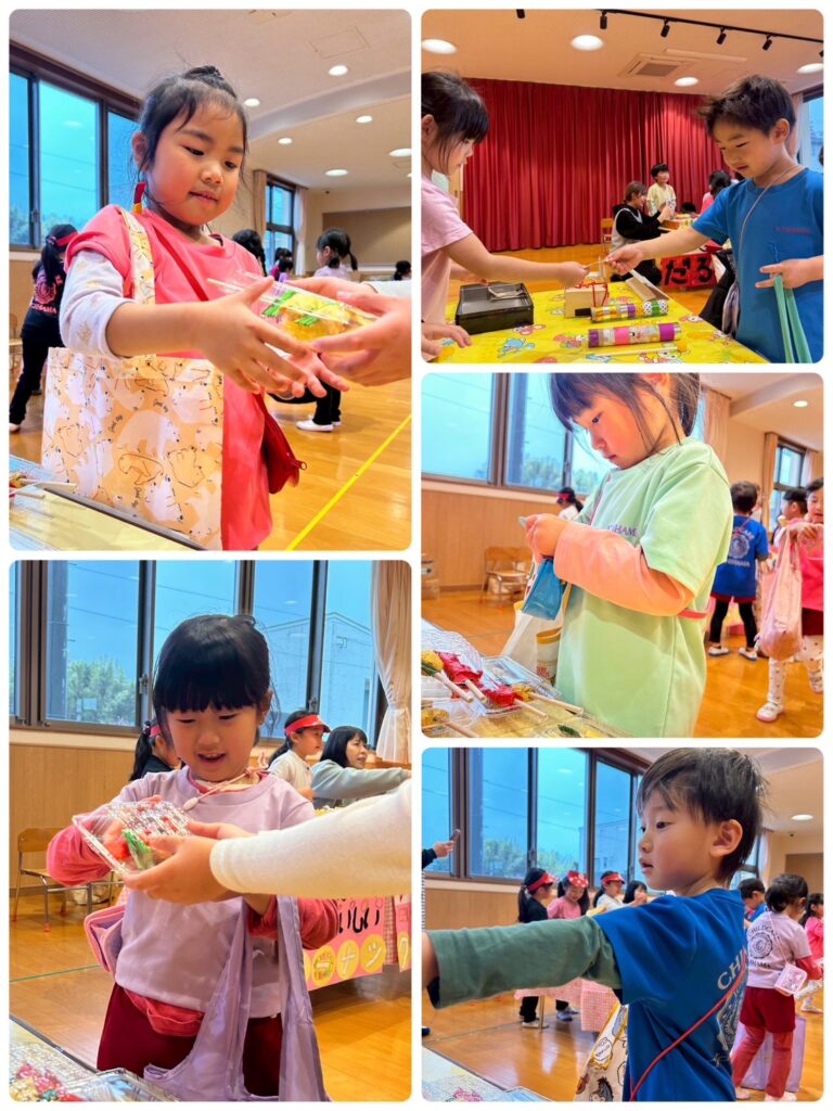 お店の店員が終わったら次はお客さんになって買い物をしました🛒。・*・:´-前にあるお金と一緒か見比べながら自分で出して商品を選びました!!それぞれ買いたかった商品を無事に買うことができ大満足しているこどもたちでした(*^^*)楽しかったね😄