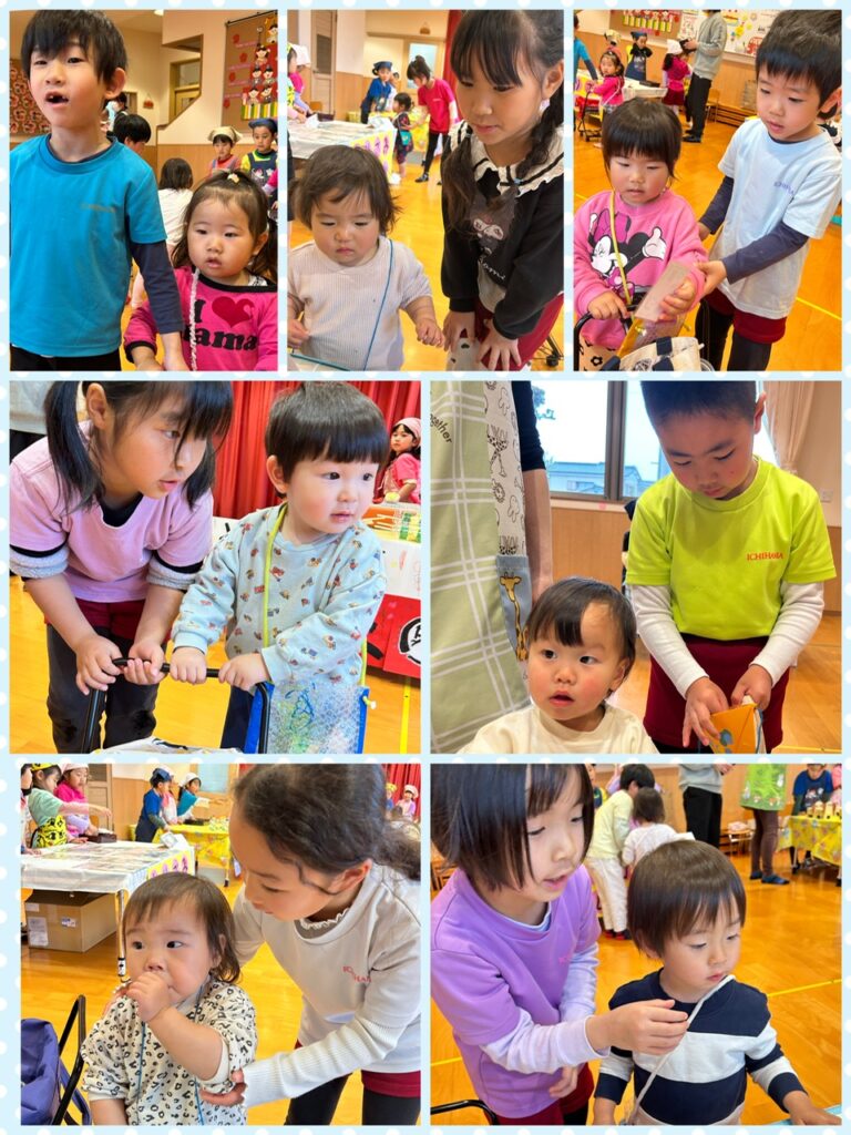 そしてあお組さんは、自分達がお買い物をするだけでなく、さくらんぼ組やいちご組のお友達のお世話もしてくれました♡ 一緒にカートをおしてあげる姿や、お金を一緒に出してあげたり、商品をカバンに入れてあげる優しい姿を見て、本当にお兄ちゃんお姉ちゃんになったなぁとこども達の成長を改めて感じることが出来ました🫧🤍 そして、あお組さんがお買い物をする番が回ってくると、自分達が狙いを定めていたお店に一目散に並ぶ姿も🤣🤣 欲しかったものをゲット出来て、とても満足そうなあお組さんでした︎💕︎︎ 最後は、みどり組さんと交代をして、お店屋さんをしました🌟 去年したことを思い出しながら、元気よく楽しく、お店屋さんになりきっている姿がとっても可愛かったです🤍 雨が降っていたので午後からのお買い物体験には行けませんでしたが、また後日みんなで行けたらと思います😊