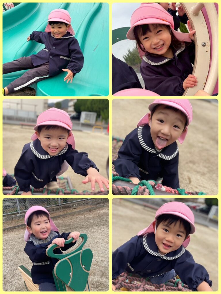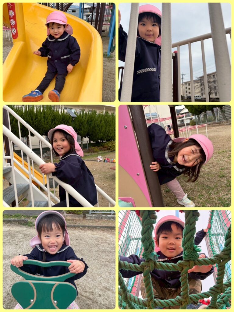 公園での楽しそうな子どもたちの笑顔☺︎少し高いところに挑戦する姿✨そしてお友達を遊びに誘ったり、一緒に楽しそうに遊ぶ姿♪ 大人用のトイレに挑戦して、へっちゃらな顔で帰ってきた時の表情😁子どもたちのキラキラとした様々な表情を見る事もできた遠足になりました。4月と比べるととっても頼もしいお兄さん・お姉さんの顔になっています✨もうすぐきいろ組さん。もも組で過ごす時間は残り少なくなってきましたが、これまでと変わらず子どもたちといろんなことを楽しみながら大切に過ごしていこうと思います😌💕