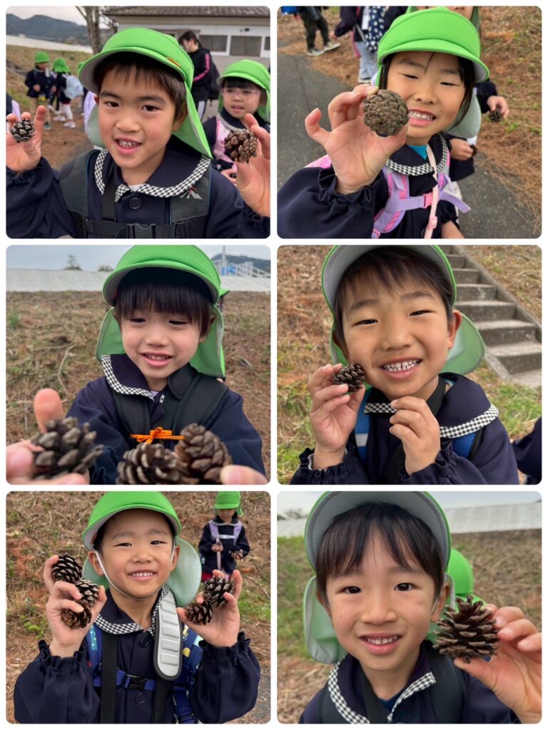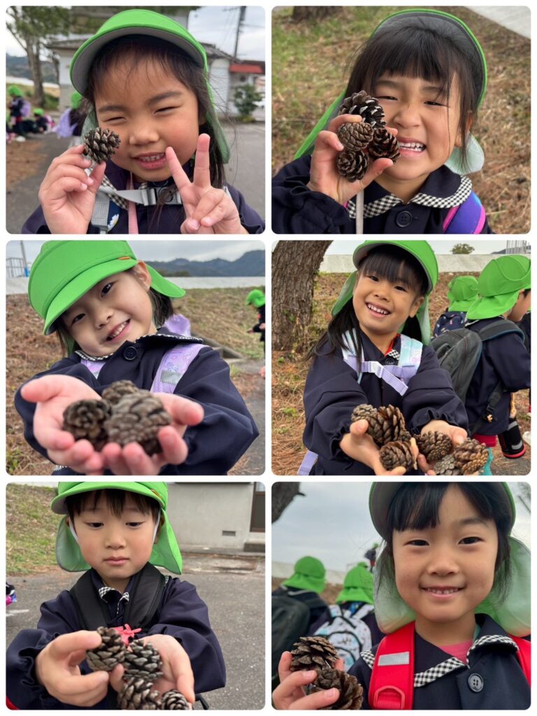 途中、「さんぽ」を歌ったり松ぼっくりを拾ったりしてたくさんの自然物に触れながら楽しく散歩することが出来ました😆
