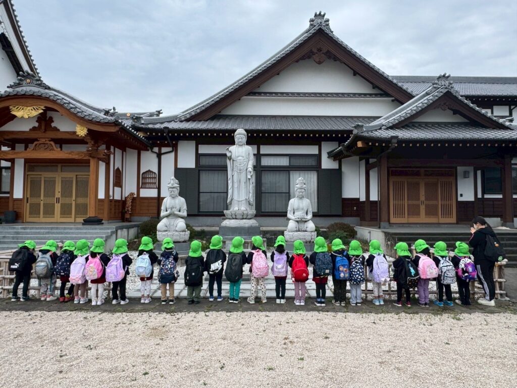 ひな巡りを予定していましたが、変更して旧園舎に行き「かっこいいあおぐみになれますように🙏🏻🌟」とみんなでお願いし、市浜児童クラブまで行きました!
