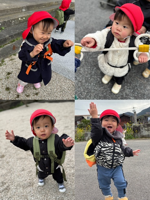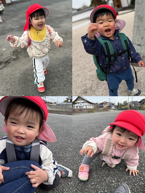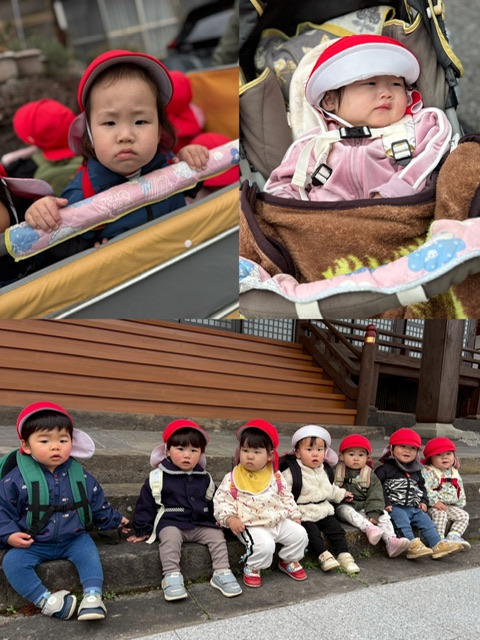 さくらんぼ組 🌸お別れ遠足🌸 2026.03.09 お別れ遠足として、みんなで安養寺までお散歩に出かけました☺️誘導ロープをしっかり握って歩こうとする姿や、お散歩車に乗って周りの景色を楽しむ姿など、子どもたちはそれぞれの形でお散歩を満喫していました🥰道中では車や動物🐱を見つけて嬉しそうに指をさしたり、笑顔を見せる姿もありました🎶お家の方が作ってくれたお弁当🍙大きなお口で食べる姿がとっても可愛かったです😆0歳児クラスのみんなで出かける、楽しい思い出のひとつになりました❤️ こども園最後の遠足🐬🚌 前の記事 お別れ遠足🍱☀️ 次の記事