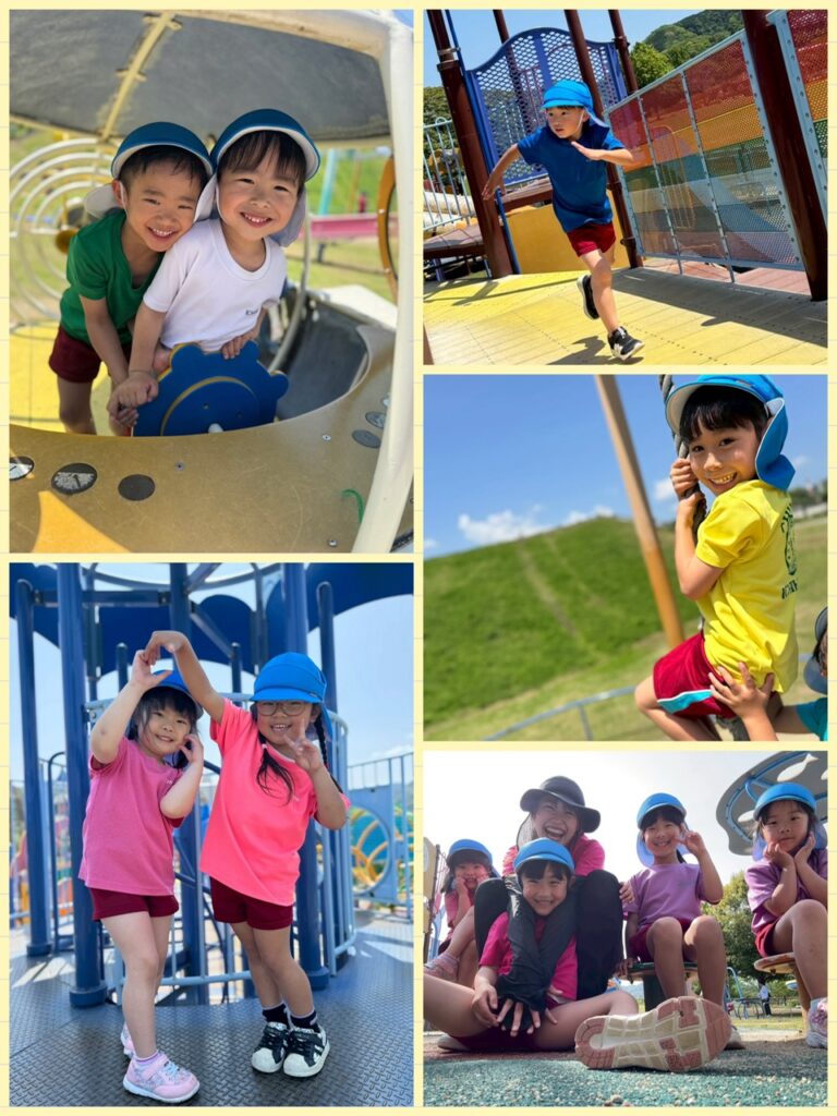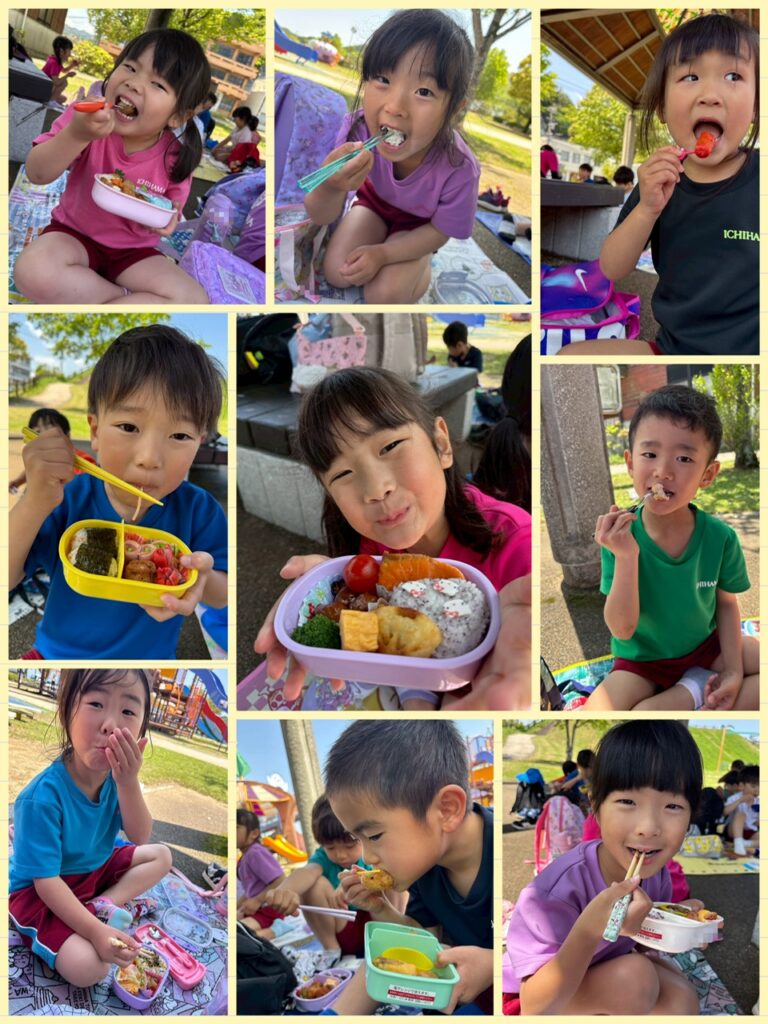 つくみん公園に到着すると、広い芝生や遊具に大喜び!お友だちと一緒に鬼ごっこをしたり、滑り台を楽しんだりと、思いきり体を動かして遊びました。お弁当の時間には、「見て見て!」と嬉しそうにお家の方が作ってくれたお弁当を見せ合いながら、美味しそうに食べていましたよ🧡